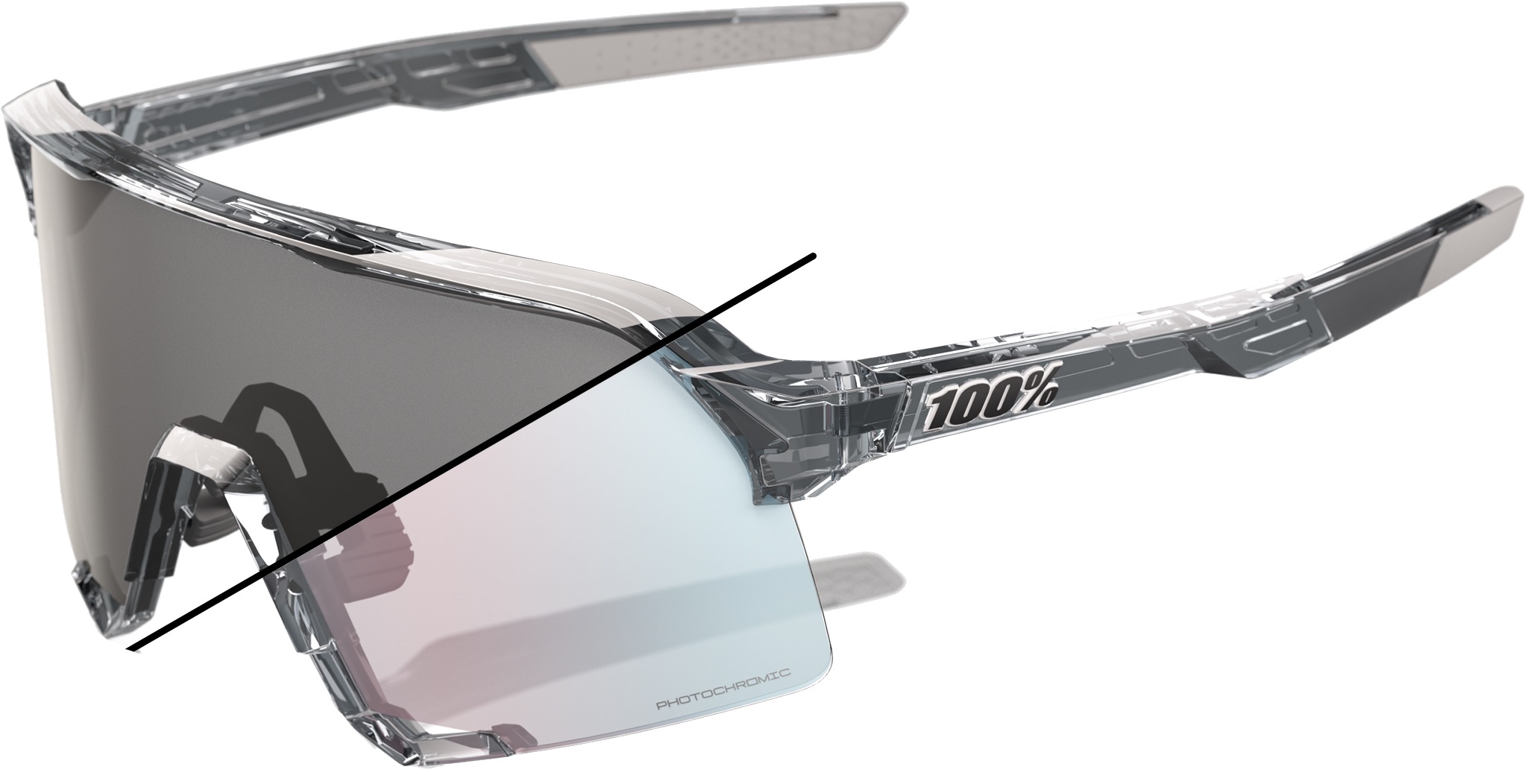 100% SPEEDCRAFT Cykelbriller – Polished Translucent Grey – Rose Gold Mirror Photochromic Lens